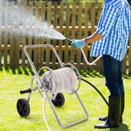 VEVOR Hose Reel Cart, Hold Up to 300 ft of 5/8’’ Hose, Garden Water Hose Carts Mobile Tools with 4 Wheels, Heavy Duty Powder-coated Steel Outdoor Planting with Storage Basket, for Garden, Yard, Lawn