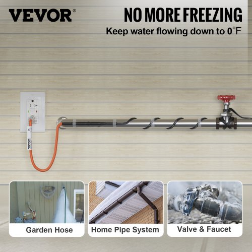 VEVOR Self-Regulating Pipe Heating Cable, 3FT 5W/FT Heat Tape for Pipes Freeze Protection, Water Pipe Heat Cable with Built-in Thermostat Protects PVC Hose, Metal and Plastic Pipe from Freezing