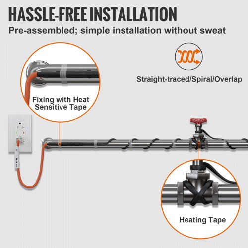 VEVOR Pipe Heating Cable, 30FT 7W/FT Heat Tape for Pipes with Built-in Thermostat, Water Pipe Heat Cable Protects PVC Hose, Metal and Plastic Pipe from Freezing