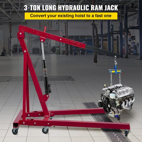 VEVOR Hydraulic Long Ram Jack, 3 Tons/6600 lbs Capacity, with Single Piston Pump and Clevis Base, Manual Cherry Picker with Handle, for Garage/Shop Cranes, Engine Lift Hoist, Black