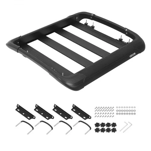 VEVOR Roof Rack Cargo Basket, 38 x 38 x 5.59 in, Universal Heavy Duty Roof Top Carrier Basket, 150 lbs Capacity, All-Weather Car Top Luggage Holder, Fits Crossbars up to 3.54 x 1.97 in, for SUV Truck