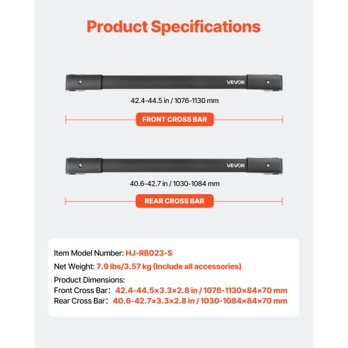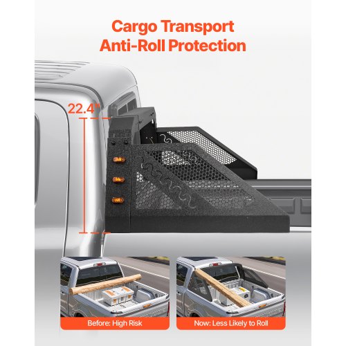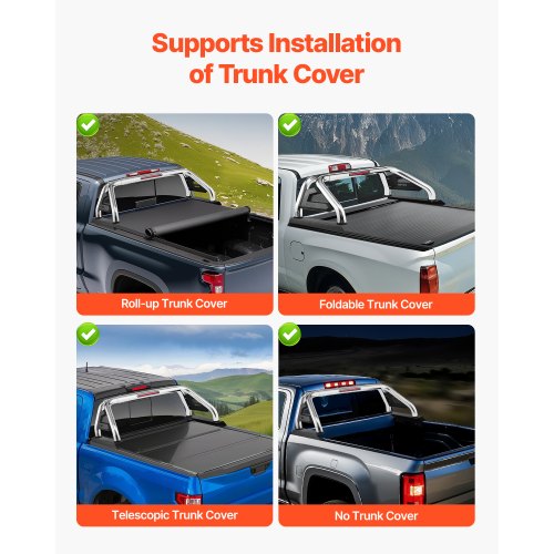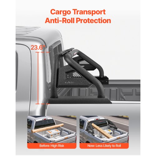 VEVOR Truck Bed Roll Bar, Universal Pickup Sport Adjustable Bar Chase Rack Compatible with Mid-Size Truck, Carbon Steel Construction with Extension Light Bracket, No Rack Included