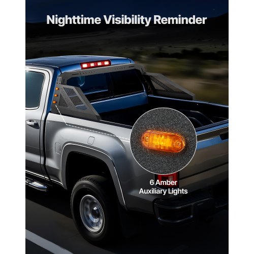VEVOR Truck Bed Roll Bar, Universal Pickup Sport Adjustable Bar Chase Rack Compatible with Full-Size Truck, Carbon Steel Construction with 6 Amber Auxiliary Lights, No Rack Included