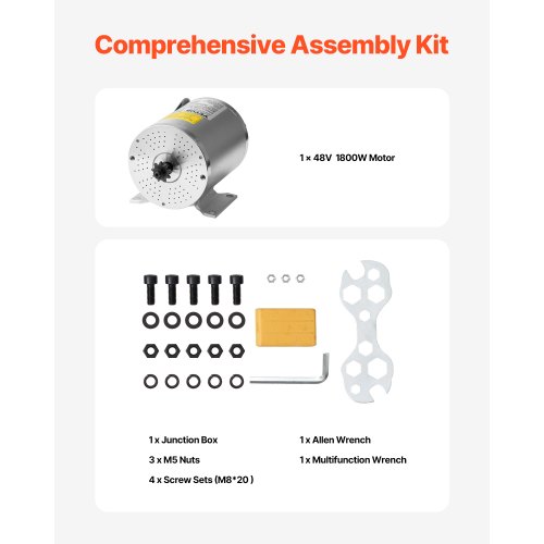 VEVOR 1800W Electric Brushless DC Motor Kit - 48V 4500rpm Motor with Upgraded Speed Controller and Throttle Grip Kit for Go Karts E-Bike Motorcycle Scooter DIY
