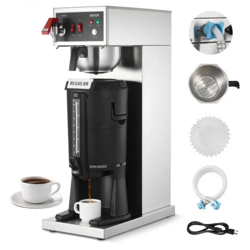 VEVOR 12 Cups Commercial Drip Coffee Maker, Coffee Maker Machine with Thermal Carafe to Keep Warm or Cold, Stainless Steel Pour Over Coffee Brewer for Restaurant, Office, Cafe