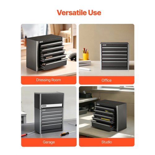 VEVOR Metal Tool Box, 8.6-inch, Portable Metal Tool Box with 5 Drawers, Small Tool Chest with EVA Liners and PP Feet Pads, Heavy-Duty Steel With Ball Bearing Opening and Powder Coated Finish, Black