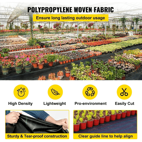 VEVOR Weed Barrier Landscape Fabric, 5 x 250 ft, 5 Oz Premium Woven Ground Cover Heavy Duty PP Material & Easy Setup, Single-Layer for Outdoor Garden, Lawn, Driveway, Black