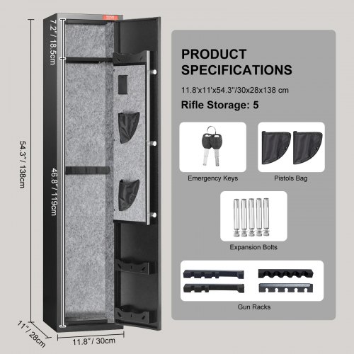 VEVOR 5 Rifles Gun Safe, Rifle Safe with Fingerprint Lock, Quick Access Gun Storage Cabinet for Shotguns with Removable Shelf, Pistol Rack, Ammo Storage Box for Home Long Gun and Pistols