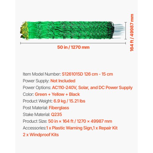 VEVOR Electric Fence Netting, 50" H x 164' L, Livestock Net Fencing with Posts & Stakes, Portable Mesh Nets for Goats, Sheep, Deer, Hogs, Dogs, Electric Fencing for Backyards, Gardens, Farms, Ranches