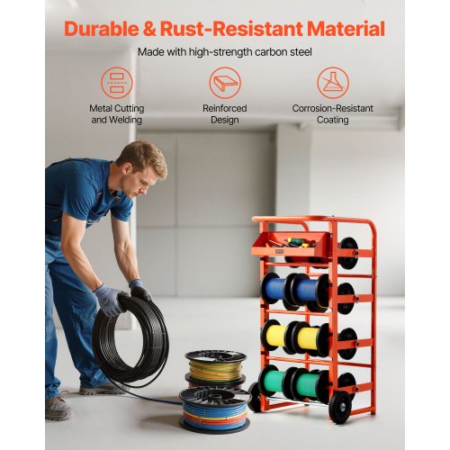 VEVOR Wire Spool Rack, 11 Rods, Multi-Spool Wire Rack Dispenser, Cable Caddy with Wheels, Cable Holder with Storage Tray for Wiring Storage, for Electrical, Industrial & Retail Use, Working Efficiency