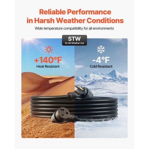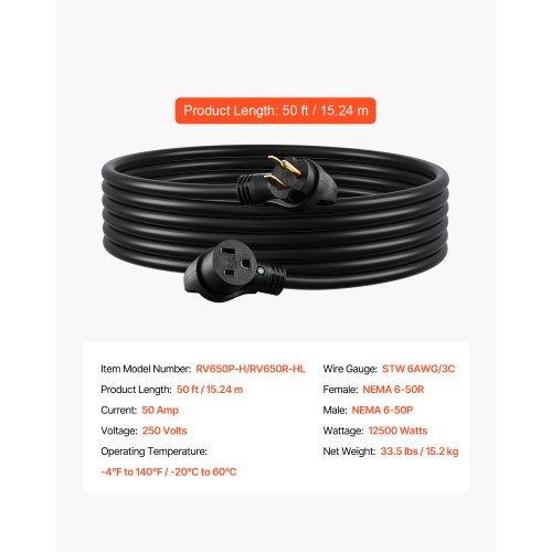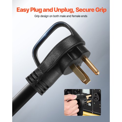 VEVOR 30 Feet RV Power Cord, 50 Amp, Heavy Duty STW 6/3 + 8/1 Generator Cord, NEMA 14-50P Male NEMA SS2-50R Female Plug, with LED Indicator Handle 15A Adapter, for RVs, generators, campers, ETL Listed