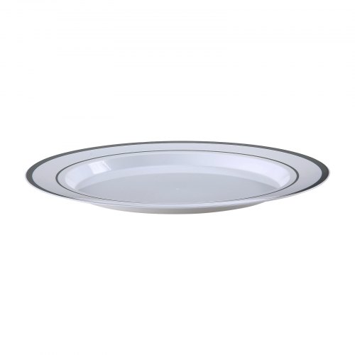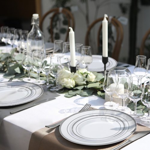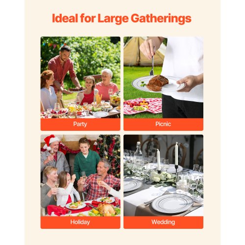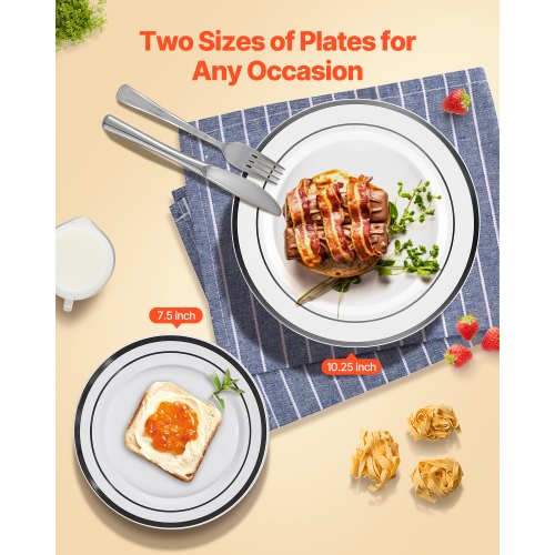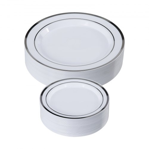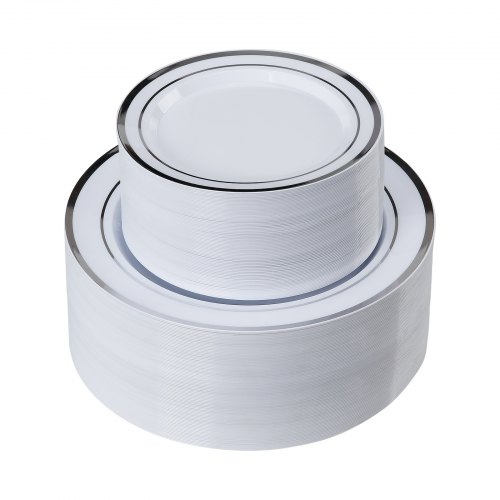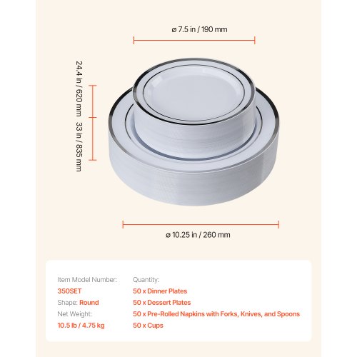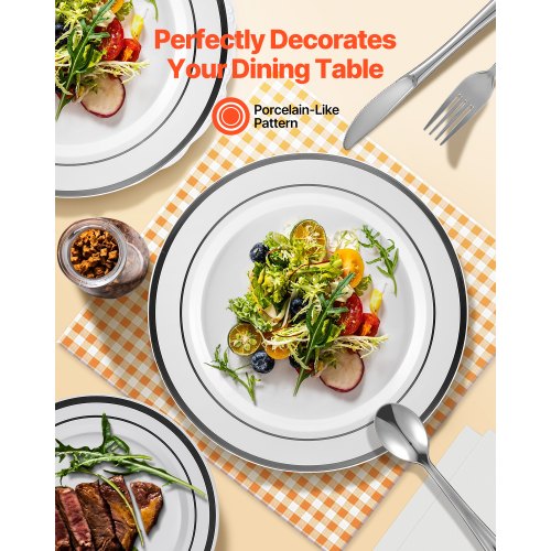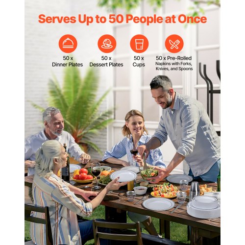 VEVOR Plastic Disposable Plates, 350 Pcs Plastic Dinnerware Set, Include 50 Dinner Plates, 50 Dessert Plates, 50 Pre-Rolled Napkins, 50 Forks, 50 Knives, 50 Spoons, and 50 Cups, for Party and Wedding