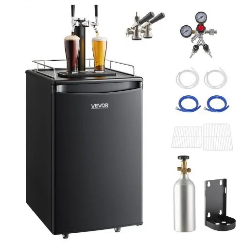 VEVOR Beer Kegerator, Dual Tap Draft Beer Dispenser, Full Size Keg Refrigerator with CO2 Cylinder, Shelves, Drip Tray & Rail, 32°F- 50°F Temperature Control, Hold 1/6, 1/4, 1/2 Barrels, Black