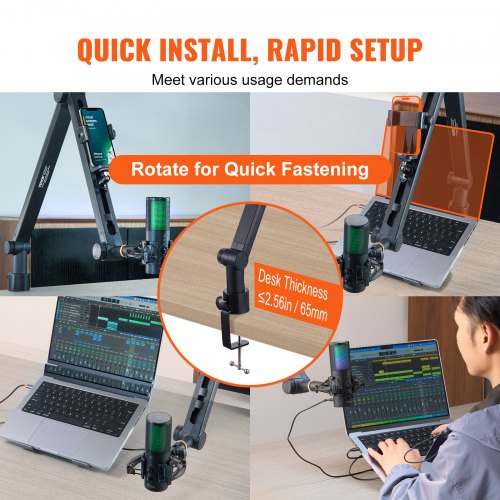 VEVOR Microphone Boom Arm with Desk Mount, 360° Rotatable, Adjustable Mic Stand with 3/8" to 5/8" Adapter Port Headset Hook, for Blue Yeti Hyperx Quadcast Blue Snowball Shure SM7B Audio Technica