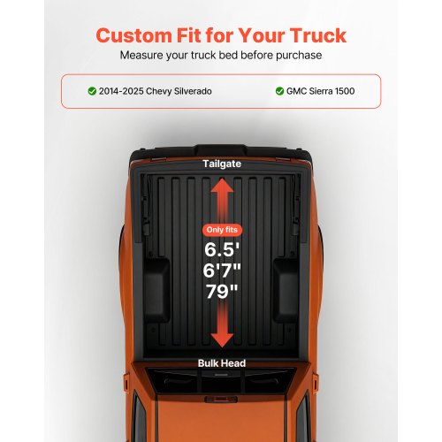 VEVOR Soft Roll-Up Truck Bed Tonneau Cover, Compatible with 2020-2025 Chevy Silverado/GMC Sierra 2500 3500 HD, Fits 6.9 ft (6 ft 10 in/82 in) Bed, PVC Tonneau Cover with Aluminum Alloy Support Bars