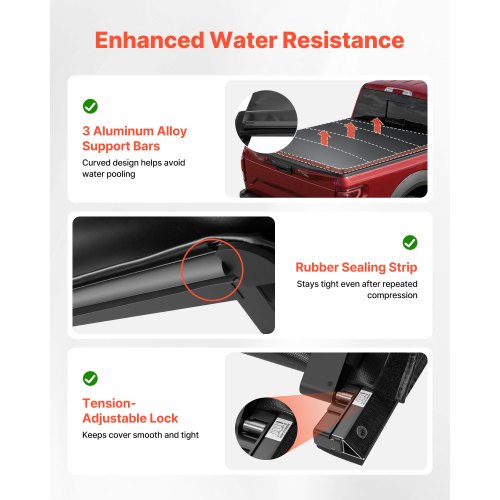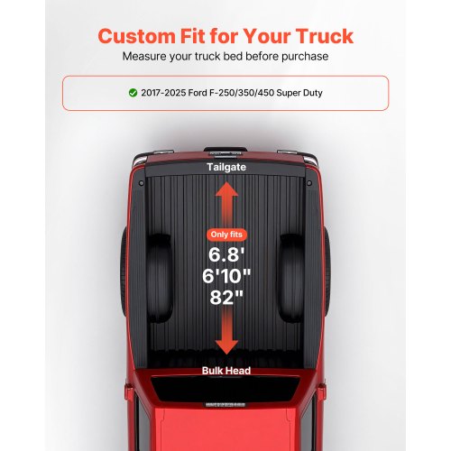 VEVOR Soft Roll-Up Truck Bed Tonneau Cover, Compatible with 2017-2025 Ford F-250/350/450 Super Duty, Fits 6.8 ft (6 ft 10 in/82 in) Bed, Triple-Layer PVC Tonneau Cover with Three Aluminum Alloy Bars