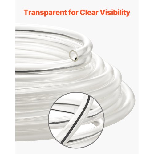 VEVOR Clear Vinyl Tubing, 3/8" ID x 1/2" OD, 50FT Plastic PVC Tubing, Flexible and Cuttable Clear Hose, 1/16 in Wall Thickness, High-strength PVC Material for Aquarium Irrigation Swimming Pool Lab