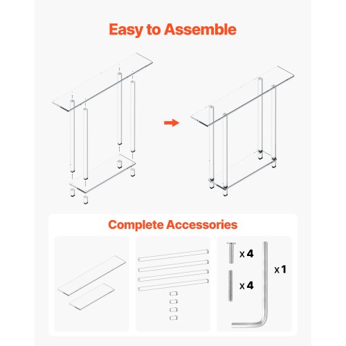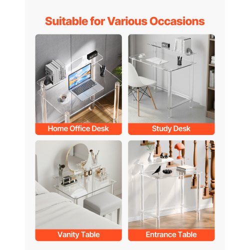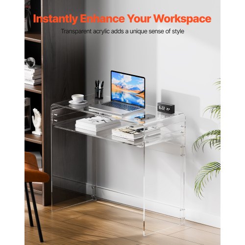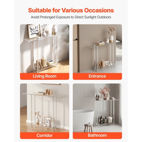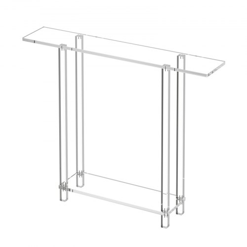 VEVOR Acrylic Console Table, 2 Tiers Narrow Side Desk with Bottom Open Storage, Modern Rectangle Acrylic End Table, Transparent Entry Desk for Foyer, Hallway, Living Room, 7.6 x 39.4 x 31.5 in (Clear)