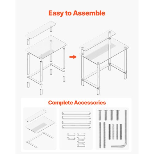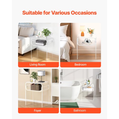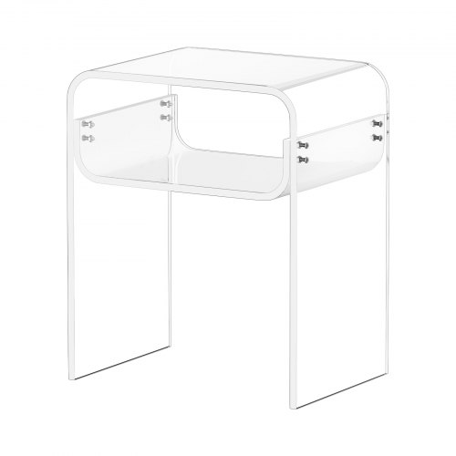 VEVOR Acrylic Side Table, 2 Tiers Clear Bedside Table with Storage Shelf, Modern Rectangle Acrylic End Desk, Transparent Thick Nightstand for Bedroom, Living Room, Study, 11.8 x 15.7 x 19.7 in (Clear)
