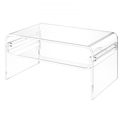VEVOR Acrylic Coffee Table, 2 Tiers Center Table with Storage Shelf, Modern Rectangle Acrylic Coffee Desk, Ideal for Dining Room, Kitchen Island, Restaurant, Office, 19.7 x 31.5 x 15 in (Clear)