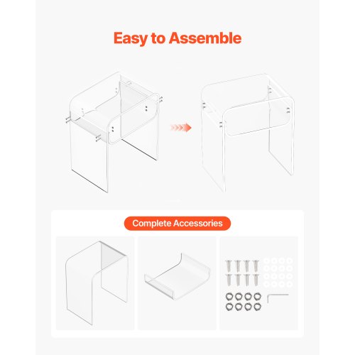 VEVOR Acrylic Drink Table, Clear End Table Round Top with Solid Post, Modern Acrylic Cake Table Stand, Transparent Side Desk for Coffee, Drink, Food, Snack, Easy Assembly, 10 x 10 x 21.3 in (Clear)
