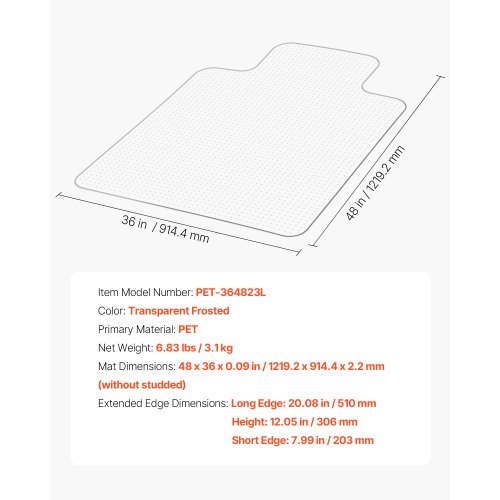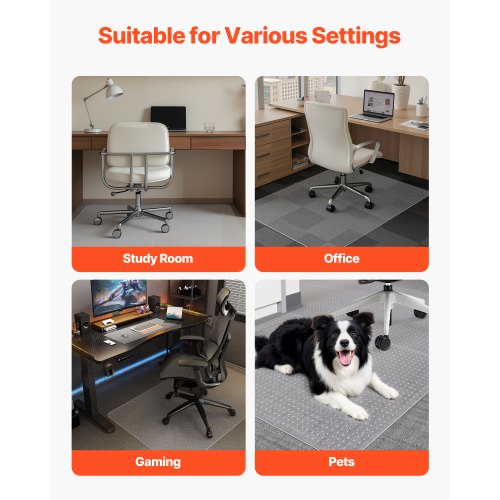 VEVOR Chair Mat, 36 x 48-inch Transparent Office Chair Mat for Hard Floors, Floor Protector for Rolling Chairs, Non-Slip & Easy to Clean, Smooth Glide Under Desk Rug for Home Office (Rectangular)