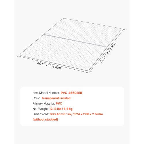 VEVOR Chair Mat, 36 x 48-inch Office Chair Mat for Carpeted Floors, Plastic Floor Protector Rug with Studded, Non-Slip & Easy to Clean, Smooth Glide Under Desk Rug for Home Office (Rectangular)