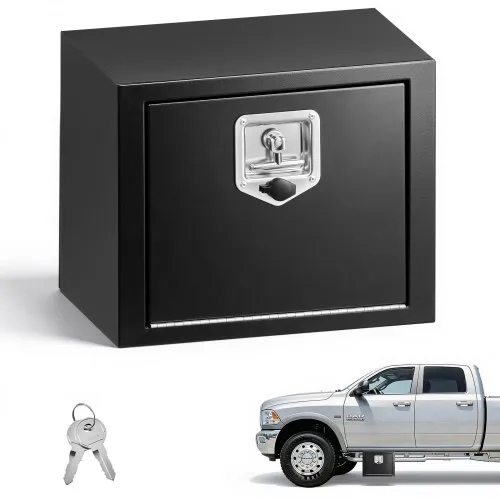 VEVOR Underbody Truck Tool Box, 18 x 12 x 14 Inch Heavy Duty Steel Trailer Storage Box with Lock & Keys, Waterproof Trailer Storage Organizer Under Body Chest with T-Handle for Truck, Van, SUV, Black