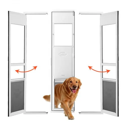 VEVOR Dog Door for Sliding Glass Door, 75 7/8" to 80 11/16" Adjustable Height, Aluminum Alloy Frame with Flap and Lock, for Extra Large-Sized Dogs, 180° Swing-Open Sliding Glass Pet Doors for Renters