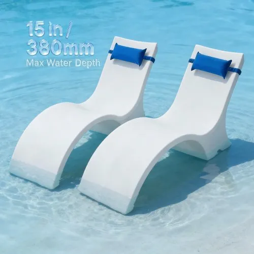 VEVOR In-Pool Lounge Chairs, Set of 2 Chaise Lounger, Inside Pool Lounge Chairs for up to 5" Water Depths, Fixed in Pools & Floating on Water, Suitable for All Pool Types, Poolside & Sun Deck Tanning