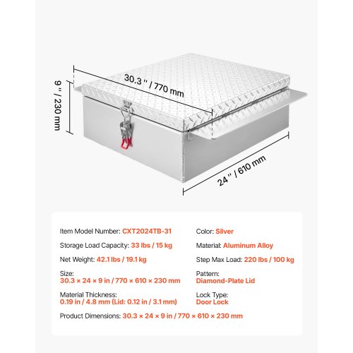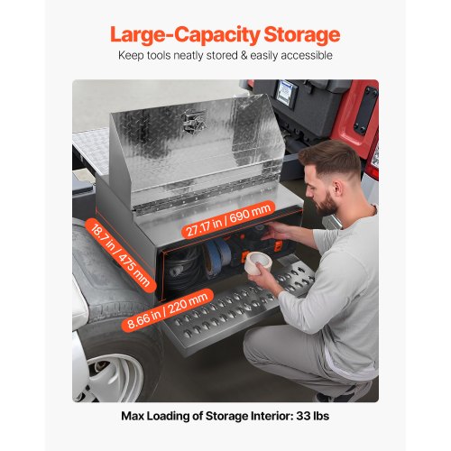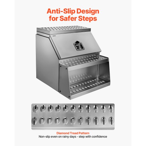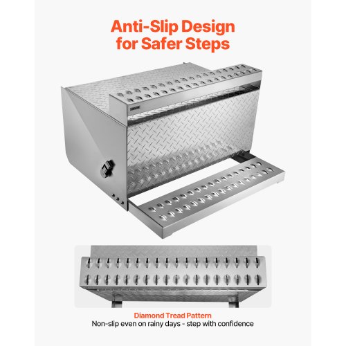 VEVOR Semi-Truck Step Tool Box, 31" x 30" x 19" Heavy Duty Aluminum Diamond Plate Toolbox, Waterproof Cab Entry Step Storage Box with Shock-Absorbing Latch for Flatbed, Crane, and Semi Trucks