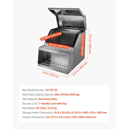 VEVOR Semi-Truck Step Tool Box, 24" x 27.5" x 25.4" Heavy Duty Aluminum Toolbox Side Mount, Waterproof Side Storage Saddle Step Box with T-Handle Lock & Keys for Semi Trucks, Flatbed Trailers