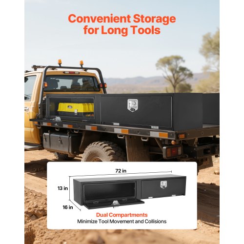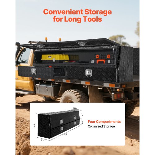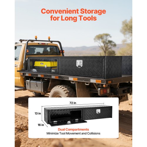 VEVOR Crossover Truck Tool Box, 72x20x14 In, Heavy Duty Aluminum Toolbox with Diamond Texture, Pick Up Truck Bed RV Trailer Toolbox, Waterproof Storage Organizer with Lock, Keys, Side Handles, Black