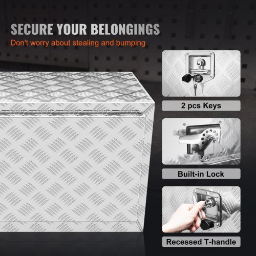 VEVOR Trailer Tongue Box, Aluminum Alloy Diamond Plate Tongue Box Tool Chest, Heavy Duty Trailer Box Storage with Lock and Keys, Utility Trailer Tongue Box for Pickup Truck, RV, Trailer, 39"x16.5"x12"