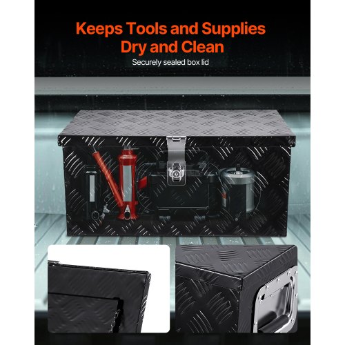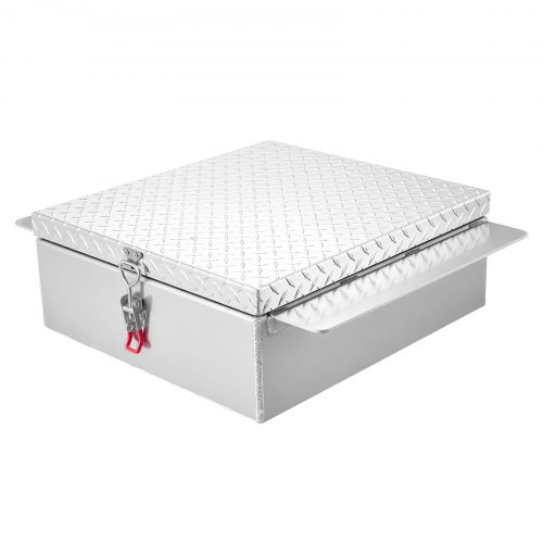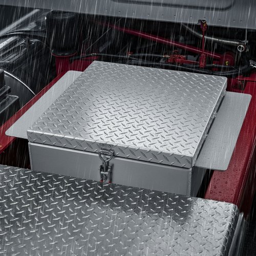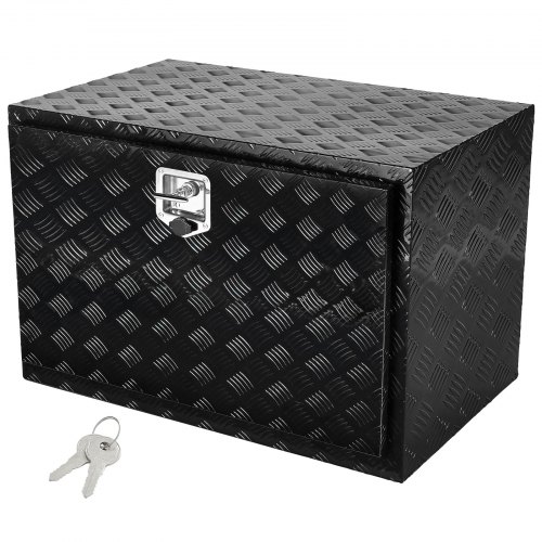 VEVOR Trailer Tongue Box, Aluminum Alloy Diamond Plate Tongue Box Tool Chest, Heavy Duty Trailer Box Storage with Lock and Keys, Utility Trailer Tongue Box for Pickup Truck, RV, Trailer, 29"x16.2"x18"