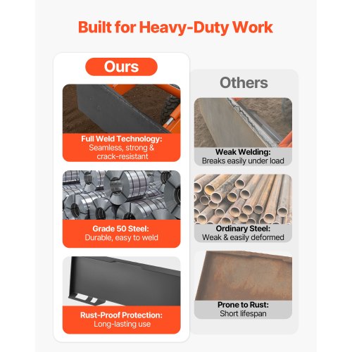 VEVOR Bucket Tooth Bar, 72'', Heavy Duty Tractor Bucket 9 Teeth Bar for Loader Tractor Skidsteer, 4560 lbs Load-Bearing Capacity Bolt On Design, for Efficient Soil Excavation and Bucket Protection