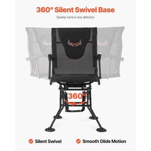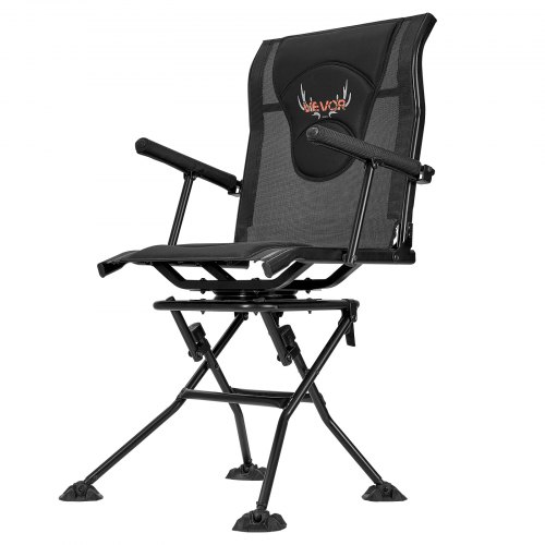 VEVOR Hunting Chair, 360° Silent Swivel, Foldable Portable Blind Chair, Heavy-Duty Steel Frame Ground Stool Seat,with Armrests, Anti-Sink Feet, Height Adjustable, 350 Lbs Capacity for Fishing Camping