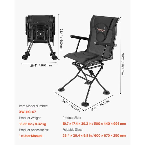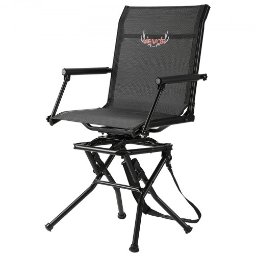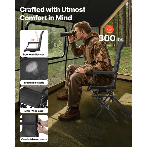 VEVOR Hunting Chair, 360° Silent Swivel, Lightweight Blind Chair, Heavy-Duty Steel Frame Ground Stool Seat, with Padded Armrests, Height Adjustable, 300 Lbs Capacity, for Outdoor Fishing, Camping