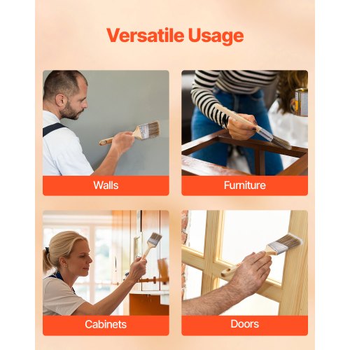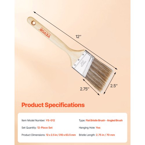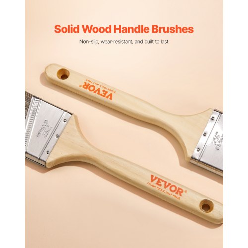 VEVOR Paint Brushes, 12 Piece Angle Paint Brush, Treated Wood Handle, Paint Brush Set for All Latex and Oil Paints & Stains, Wood Stain Brushes for Cabinets, Walls, Fences, Interior & Exterior Use