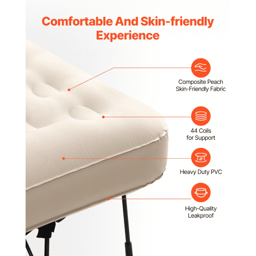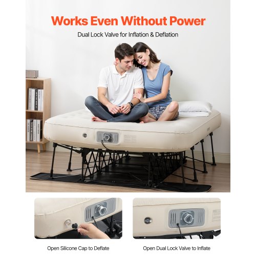 VEVOR Air Mattress with Frame, Inflatable 2 Person Camping Cot with Built-in Pump, Portable Folding Air Beds Supports 600 lbs, Blow Up Anywhere Bed for Guests Camping Travel Indoor & Outdoor Use
