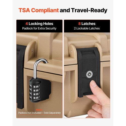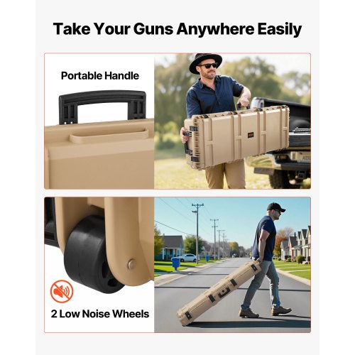 VEVOR Hard Rifle Case, Lockable Rifle Case with Pre-cut Foams, 52 in Gun Storage with Wheels, Heavy Duty IP67 Waterproof & Dustproof Pistol Storage Cases for Rifles, Shotguns, Airsoft Guns, Khaki