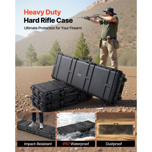 VEVOR Hard Rifle Case, Lockable Rifle Case with Pre-cut Foams, 52 in Gun Storage with Wheels, Heavy Duty IP67 Waterproof & Dustproof Pistol Storage Cases for Rifles, Shotguns, Airsoft Guns, Black