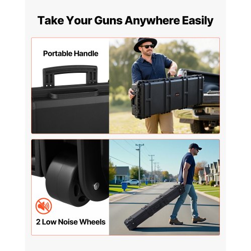 VEVOR Hard Rifle Case, Lockable Rifle Case with Pre-cut Foams, 40 in Gun Storage with Wheels, IP67 Waterproof & Dustproof Movable Large Pistol Storage for Rifles, Shotguns, Airsoft Guns, Black
