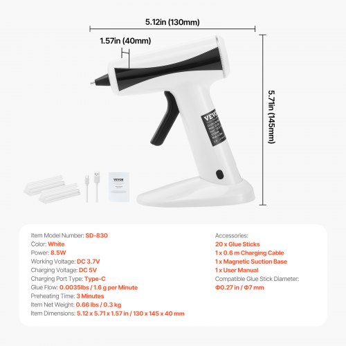 VEVOR Hot Glue Gun, 60/100W Dual Power, Mini Hot Glue Gun with 20 Premium Glue Sticks and Oxford Cloth Bag, Fast Preheating & High Temp Melt Glue Gun for Crafts, Arts, DIY, Quick Home Repairs, White