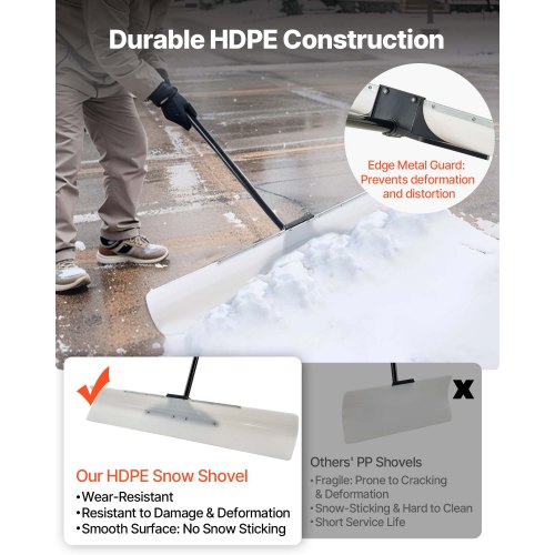 VEVOR Snow Pusher Shovel, 48 in Outdoor Snowplow Shovel with Ergonomic Grip, HDPE Plastic Blade, Winter Shovels with Segmented Handle, Metal Edged Strip, Portable Snow Removal Tool for Driveway Garden