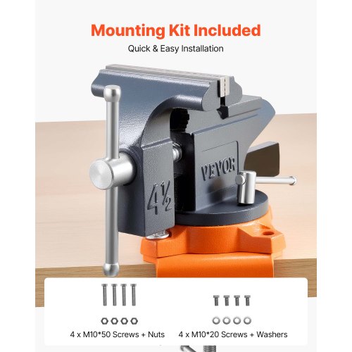 VEVOR Bench Vise, 4.5 Inch, Portable Workbench Vice with 270° Swivel Base, Quick Release Rotating Bench Clamp, Cast Iron Construction, for Woodworking, Metalworking, Drilling, Sawing, Cutting Conduit