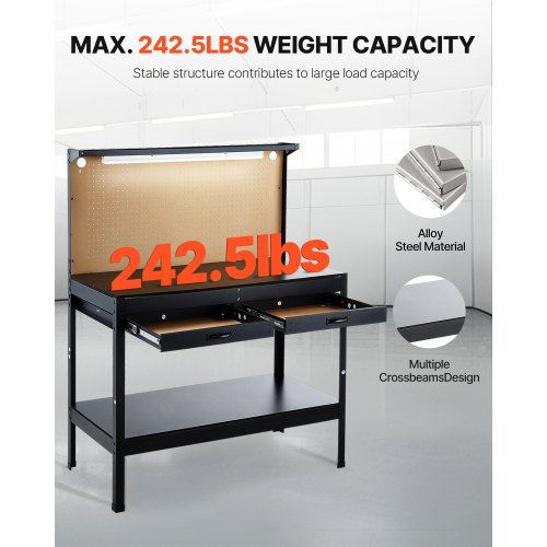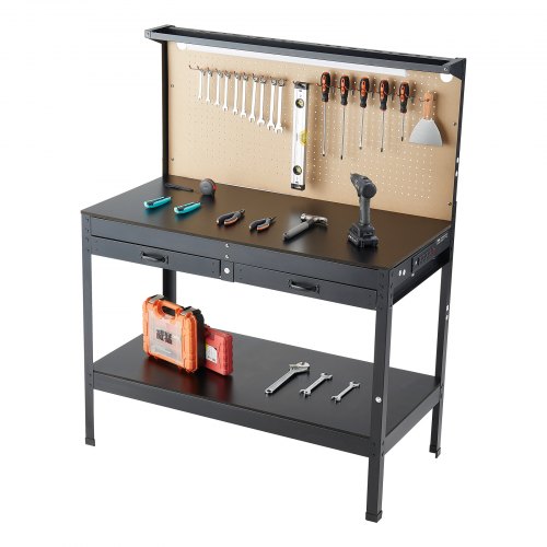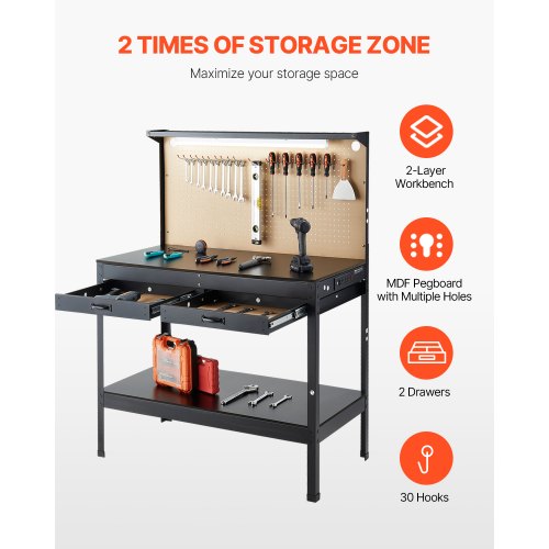 VEVOR Power Tool Organizer with Charging Station, 3-Layer Drill Storage Rack with 4 Drill Holders & Side Pegboard, Garage Tool Organizer Built in 8 Outlet Power Strips for Garage, Workbench, Workshop