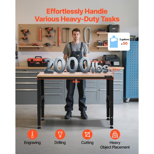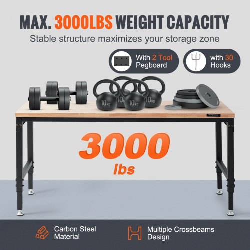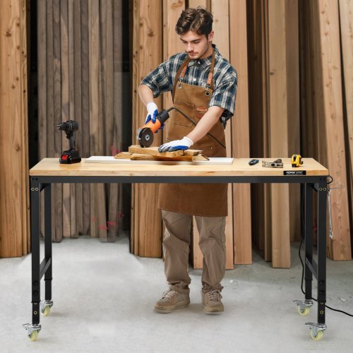 VEVOR Adjustable Workbench, 72" L X 25" W Garage Worktable with Universal Wheels, 28-39.5" Heights & 3000 LBS Load Capacity, with Power Outlets & Hardwood Top & Storage & Foot Pads, for Office Home