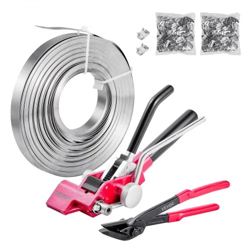 VEVOR Banding Strapping Kit with Strapping Tensioner Tool, 100 ft Length 304 Stainless Steel Banding, 100 Metal Seals, Pallet Packaging Strapping Banding Kit, Banding Packaging Strapping for Packing