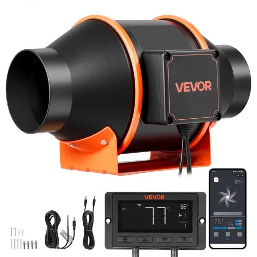 VEVOR Inline Duct Fan, 4-Inch 205 CFM Quiet EC-motor Ventilation Exhaust Fan, with Temperature Humidity Controller for Cooling Booster, Grow Tents, Hydroponics